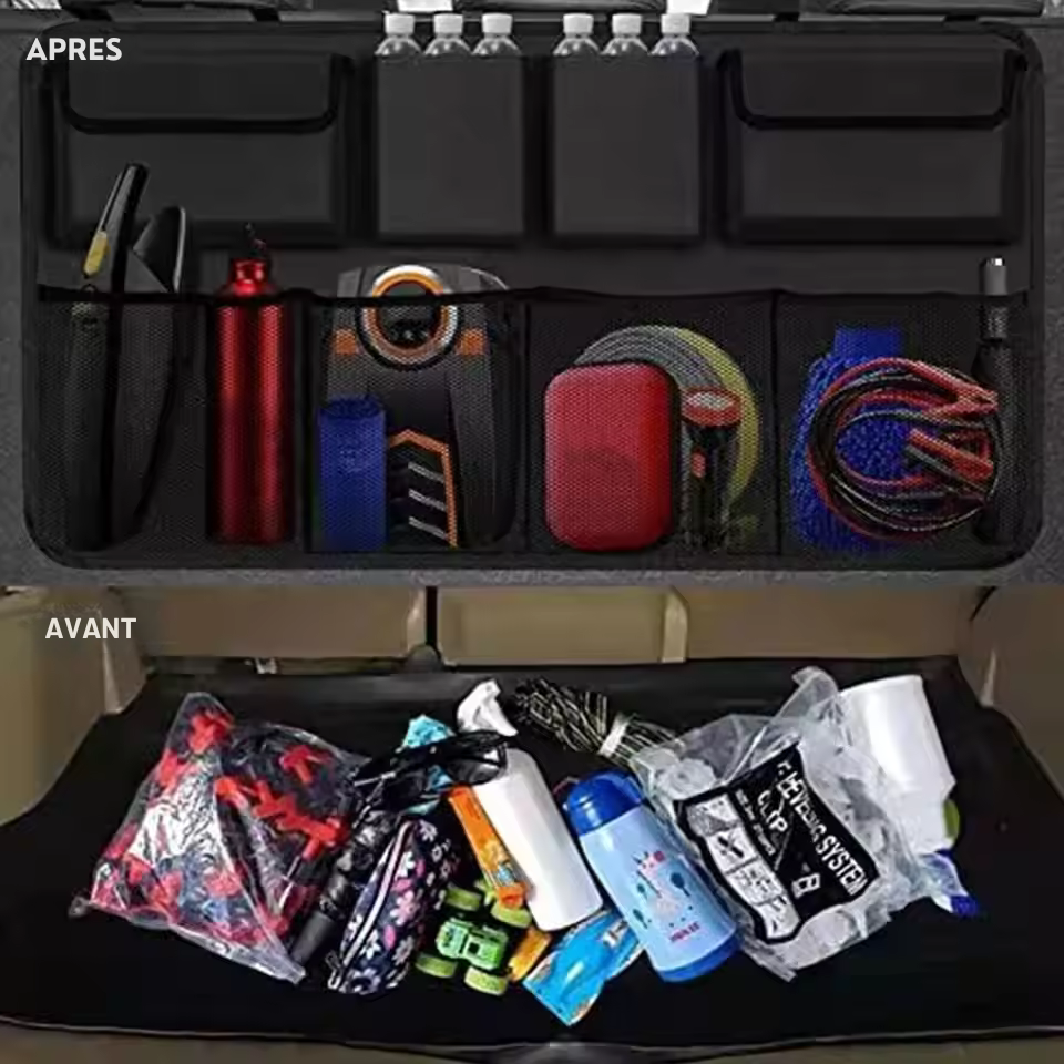 Transformez votre coffre en un espace parfaitement organisé avec notre organisateur multifonctionnel. Fini le désordre ! Gardez vos courses, outils, accessoires, et objets essentiels bien rangés et faciles d'accès.